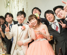ご友人の余興では、今までにバンドを披露したり、新郎様がやっている吹奏楽の仲間の皆さまがお祝いにきてくれたり、このように盛大にできるのはブリッジウエディングの魅力のひとつです。